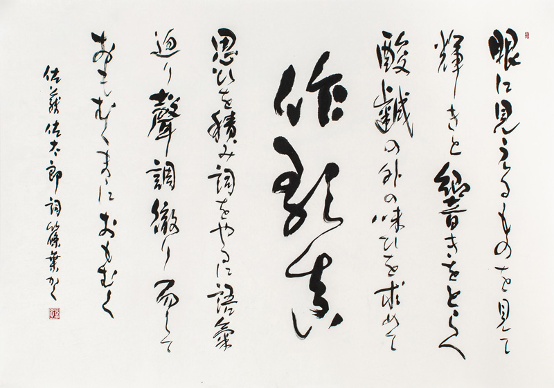 筆を持つ気持ちを短歌に読んでみました。“自らの絵に書をそふる愉しみは独り遊びの幼日に似る” |